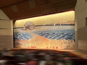 浅葱幕が落ちる前に背景画の上手の端がチラッと見えて、象がいるんですよ。象??ってなってたら、さまざまな山車が描かれていました。